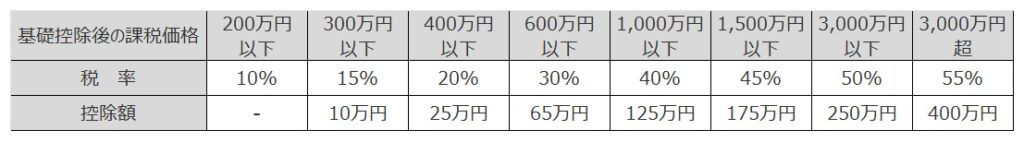 ◆贈与税額:890万円×税率40%-125万円=231万円